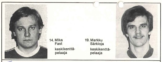 Keskikenttä: Jyrki Tuominen, Markku Hakala, Pekka Mäkelä, Jyrki Haapajärvi ja Esa Majalahti.