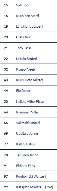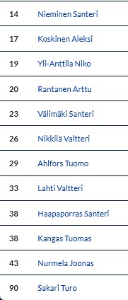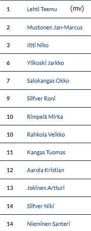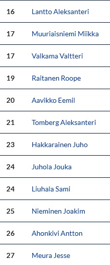 Puolustajat: Seppo Koski, Ari Koskinen, Jouko Ruohonen, Olli Tuomi, Timo Vaajakari, Kari Virtanen ja Teuvo Urho.