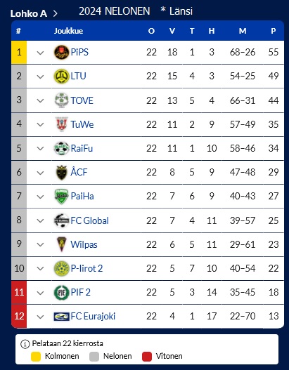 Raision Työväen Palloilijat (RaiTeePee) ~ yhdeksäs peräkkäinen kausi Vitosessa - kauden jälkeen poistui kuvioista.
