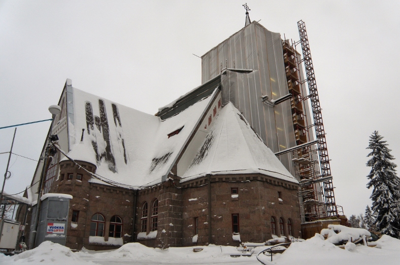 Savitaipaleen kivikirkko oli kuvaushetkellä 21.1.2012 (S&J) remontin alaisena.