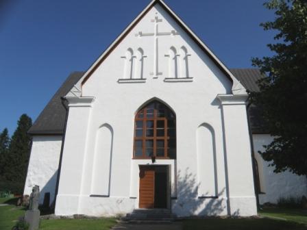 ja asehuone. Kirkon seinät on kalkittu valkoisiksi ja vanhoissa päätykolmioissa