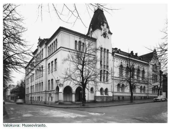 Koulurakennukset: Koulu aloitti toimintansa nahkuri Molinin talossa Läntisen pitkäkadun ja Puutarhankadun kulmassa. Syksyllä 1886 toiminta siirtyi johtokunnan rakennuttamaan taloon Kauppakadun varrella, Aleksanterin kirkkoa vastapäätä. Syksyllä 1902 koulu sai oman koulutalon Satamakadun ja Läntisen puistokadun kulmasta (Yksityiskoulujen Liitto ry, 2023).
