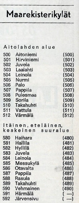 Messukylä * Aitolahti * Vuohenoja * Vehmainen * Vatiala |