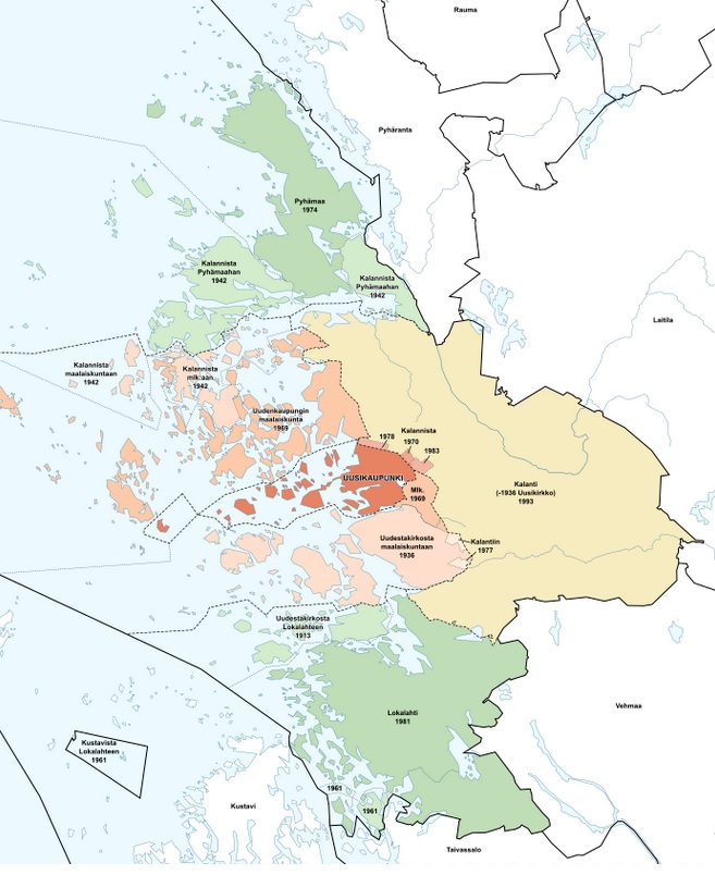 Kartta Uudenkaupungin kuntaliitoksista * Fenn-O-maniC - Wikipedia (CC BY-SA 4.0),