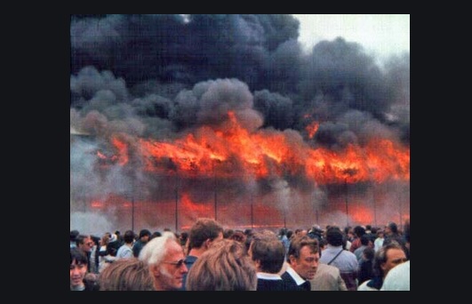 On 11 May 1985, Valley Parade was the scene of a fatal fire, during which 56 supporters were killed and at least 265 were injured. The game was the final match of the 1984–85 season, before which City were presented with the Division Three championship trophy. The fire destroyed the main stand in just nine minutes. The club played its home games at Odsal Stadium, a rugby league ground in Bradford, Elland Road, Leeds, and Leeds Road, the former home of Huddersfield Town, until December 1986, while Valley Parade was redeveloped. The club spent £2.6 million building a new main stand and improving the Kop, and reopened the new ground on 14 December 1986 for an exhibition match against an England international XI.