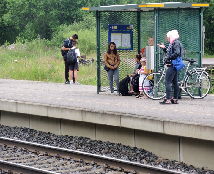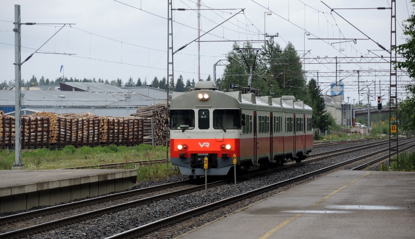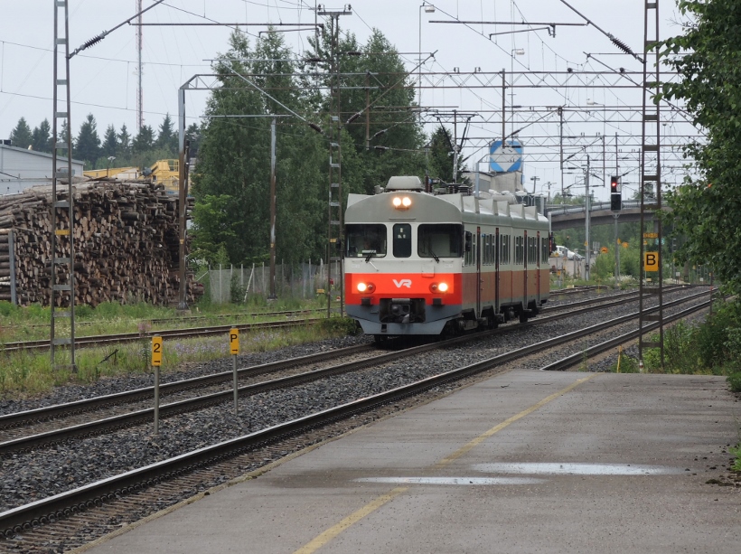 Järvelän rautatieasemalla - henkilöjuna Riihimäeltä saapuu ja jatkaa pysähdyksen jälkeen Kouvolaan ~ 3.7.2016 (S&J).