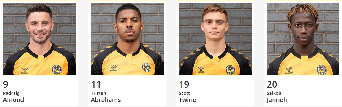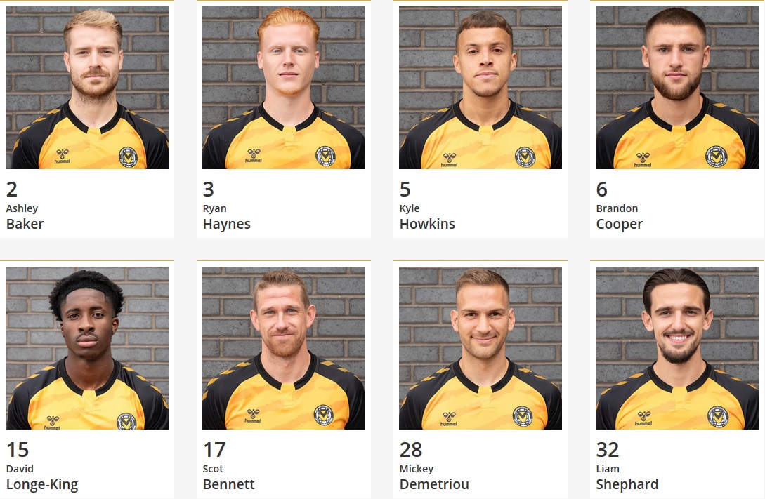 1 Danny Potter (G), 18 Glyn Thompson (G), 39 Matthew Swan (G), 40 Lee Harrison (G), 2 Paul Robson (D), 3 Lee Baker (D), 5 Gary Warren (D), 16 Andrew Hughes (D), 17 Wayne Hatswell (D), 22 Ismail Yakubu (D), 25 Paul Rodgers (D), 4 Tom Miller (M), 7 Daniel Rose (M), 8 Scott Rogers (M), 10 Sam Foley (M), 12 Ryan Gilligan (M), 14 Tom Doherty (M), 19 David Pipe (M), 22 Ryan Newman (M), 24 Troy blacking (M), 27 Felino Jardim (M), 29 Guillaume Velez (M), 9 Craig McAllister (F), 15 Nathaniel Jarvis (F), 20 Darryl Knights (F), 23 Jake Harris (F) ja 26 Elliott Buchanan (F).