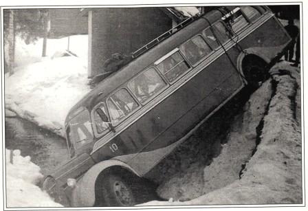 Samaisesta Arto Tammisen kirjasta tämäkin - vuoden 1954 aprillipäivänä linja-auto oli suistunut Narvinojaan Lapin ja Hinnerjoen välillä, Kaukolan ja Sukkalan kylien rajamailla. Kaksi bussia oli kohdannut juuri ojan ylittävän kivisillan kohdalla ja toinen oli väistäessään suistunut ojaan kuvan kertomaan asentoon. Henkilövahinkoja ei onneksi ollut sattunut. Vasta 1970-luvulla kyseinen kapea siltakohta jäi historiaan uuden maantielinjauksen myötä.