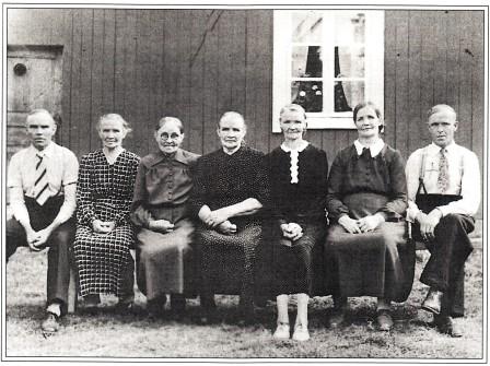 Kuvassa Virtasen suvun jäseniä Lappi Tl:n Kuolimaan kylästä - henkilöt vasemmalta: Paavo Virtanen, Hilda Viro, Else Heino, Hilja Niskala, Saima Haapanen, Aino Leino ja Eino Virtanen.